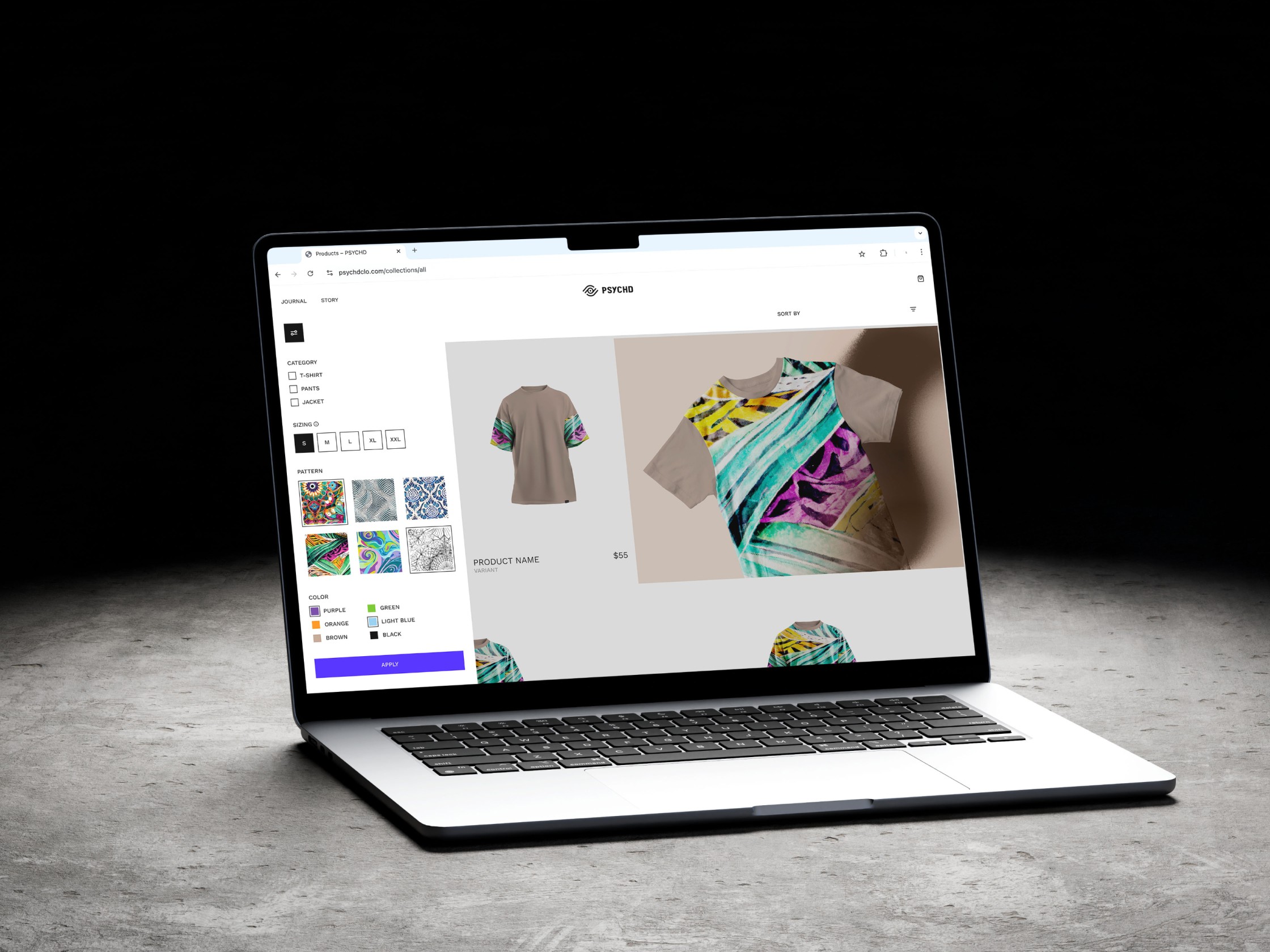 Working with Two Studio, I designed the digital presence for a fashion brand inspired by psychedelic patterns found in nature, with designs rooted in organic forms, fluid shapes, and subconscious imagery. The challenge was to make the e-commerce platform immersive yet navigable. I delivered an interactive website supported by a custom gradient system that ensured consistency across all digital touchpoints while embodying the brand’s aesthetic philosophy.
